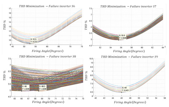 Figure 12. Minimization of the THD for different failed inverter stages.