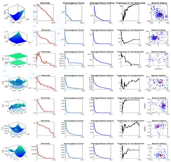 Table 2 presents a numerical example to illustrate the vectors with six dimensions generated by the previously described equations with noting that the vectors , , and presented at the same table are randomly generated between 100 and −100. The values of the inner refracted and inner reflected are obvious from this table. Outer refracted vectors could not be employed alone to update the individuals, which have to be ranged between 100 and −100 because the change rate in the updated solutions will be so low. Hence, many function evaluations will be consumed to reach better solutions. Therefore, the equations described in the next section are adapted to deal with this problem by extensively encouraging the exploration operator of the newly-proposed algorithm.