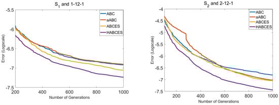 In the training of neural networks, the algorithm was applied for the modeling of parity problems, the identification of nonlinear static systems, and the identification of nonlinear dynamic systems. The amount of data used in the training process for solving XOR, 3-bit parity, and 4-bit parity problems was limited. At the same time, the problem became more complex with increasing numbers of inputs. Parallel to this situation, the error value also increased. For these problems, there was a significant performance advantage compared to the other variants of the HABCES algorithm. In particular, the results were obtained with a low number of iterations. The fact that the HABCES algorithm was able to achieve an effective solution in a short time is an important indicator of its success.