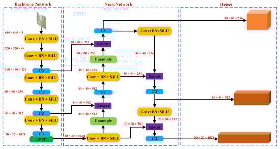 As can be seen in Figure 2 and Figure 3, the model of YOLO v5s removes the region proposal network and significantly improves the detection speed compared with the two-stage algorithm mentioned above. The model of YOLO V5 consists of three parts, namely Backbone Network, Neck Network, and Detect. Backbone Network is the most important part of the overall network. Because it takes a critical role in feature extraction of smoke pictures, which is an initial part of the network. The role of the Neck Network is to fuse features from the Backbone Network. The part of Detect can create a bounding box (location box) to detect smoke. YOLO V5 is configured with four performance models of different sizes. The parameters are arranged from low to high as YOLO v5s, YOLO V5m, YOLO V5l, and YOLO V5x. YOLO V5 uses CSPDarknet53 as a feature extraction network [34]. The feature fusion neck network is composed of an integrated spatial pyramid pooling fast (SPPF) network, feature pyramid networks (FPN) [35], and pixel aggregation network (PAN) [36].