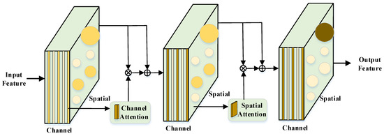 Two pooling operations have been used consecutively in the spatial attention layer to aggregate the channel information from the Xo1 feature maps. Next, feature extraction is performed through multi-layer convolution. Finally, the sigmoid activation generates the weighted spatial attention W2. The final output feature Xo2 obtained from the output feature Xo1 after channel attention as input and B2 is biased, as