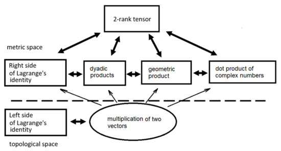 It can be derived from Equations (10) and (11) when . The Figure 3 below represents transformation options between individual mathematical entities.