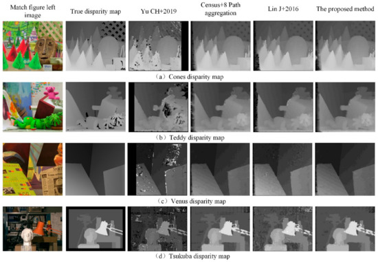 Comparison of test image disparity maps obtained by different algorithms [16,18].