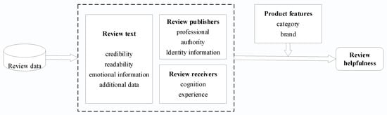 Although UGC texts are deemed useful, not all of them actually are. Excessive UGC and low value density lead to information overload [60] and confuse both consumers and businesses. Hence, distinguishing helpful reviews has become an arduous task. Review helpfulness has been well-studied in this field, referring to the ability of a review to provide useful information to the reader and assist them in making decisions [38,62]. For users, review helpfulness helps to eliminate uncertainty with respect to purchases [63]. Given that overload can strain consumers’ cognitive capabilities and increase the difficulty of information processing, helpfulness can be used by users as a quality indicator. As shown in Figure 4, some research has focused on determining the critical factors that affect review helpfulness, generally encompassing textual characteristics extracted from review content, in addition to reviewer- and source-related factors [64].