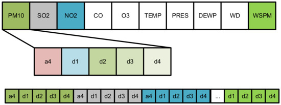 - Liu, H.; Yin, S.; Chen, C.; Duan, Z. Data multi-scale decomposition strategies for air pollution forecasting: A comprehensive review. J. Clean. Prod. 2020, 277, 124023. [Google Scholar] [CrossRef]