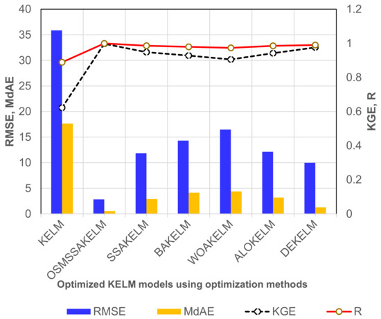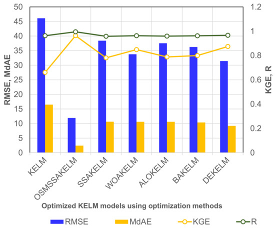 - Yaseen, Z.M.; Faris, H.; Al-Ansari, N. Hybridized extreme learning machine model with salp swarm algorithm: A novel predictive model for hydrological application. Complexity 2020, 2020, 8206245. [Google Scholar] [CrossRef]