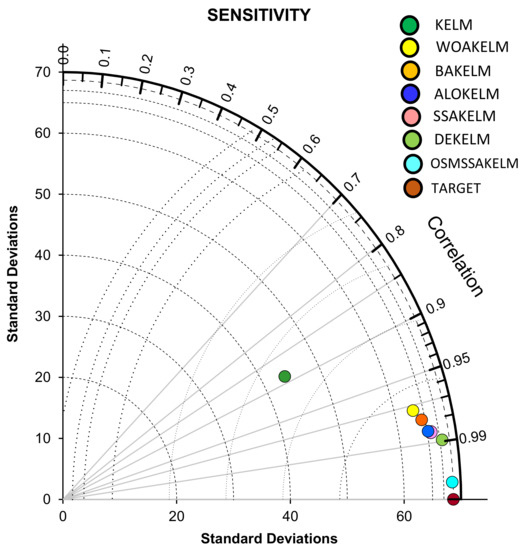 - Taylor, K.E. Summarizing multiple aspects of model performance in a single diagram. J. Geophys. Res. Atmos. 2001, 106, 7183–7192. [Google Scholar] [CrossRef]