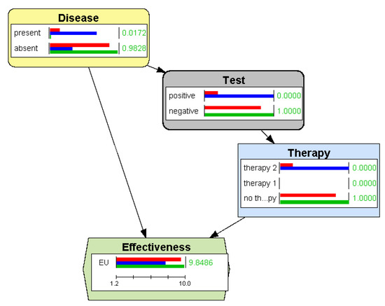 - Ezawa, K.J. Value of evidence on influence diagrams. In Proceedings of the Tenth Conference on Uncertainty in Artificial Intelligence (UAI’94), Seattle, WA, USA, 29–31 July 1994; de Mántaras, R.L., Poole, D., Eds.; Morgan Kaufmann: San Francisco, CA, USA, 1994; pp. 212–220. [Google Scholar]
