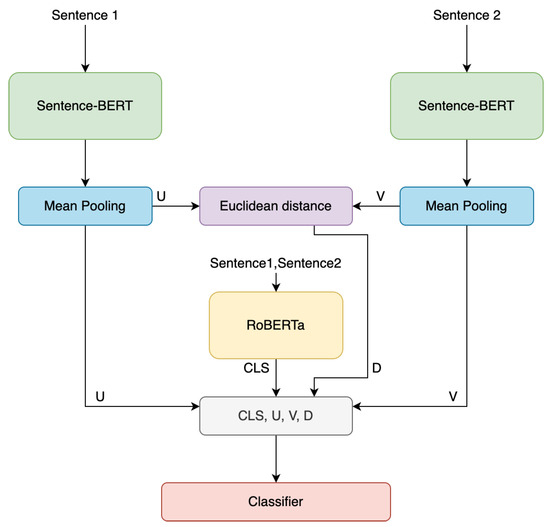 - Reimers, N.; Gurevych, I. Sentence-BERT: Sentence embeddings using Siamese BERT-networks. In Proceedings of the 2019 Conference on Empirical Methods in Natural Language Processing and the 9th International Joint Conference on Natural Language Processing (EMNLP-IJCNLP), Hong Kong, China, 3–7 November 2019; Association for Computational Linguistics: Hong Kong, China, 2019; pp. 3982–3992. [Google Scholar] [CrossRef]