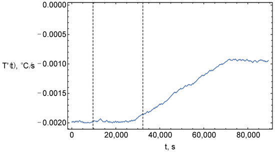 The introduction of temperature control throughout the process means determining the cooling regime to achieve the optimum according to the given criterion. In Figure 5 and Figure 6, the vertical lines indicate the boundaries of the process by reactors (the reactor block of catalytic reforming consists of three reactors). The red dashed curves represent the scenario without , which is used as a baseline.