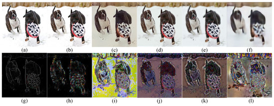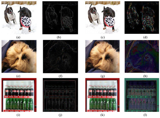 Furthermore, the difference image between the original and the reconstructed images is often used to observe the error between these two images. The difference images between the original images and the corresponding reconstructed ones are shown in the fourth column in Figure 12, where (d), (h), and (l) are the difference images |(a)–(c)|, |(e)–(g)|, and |(i)–(k)|, respectively. Obviously, some slight differences near the edges can be perceived visually.