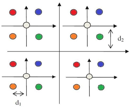 Separately produced STTC is recycled as a constituent code in the MLC. The MLSTTC divides the base signal spectrum into the next hierarchical sequence of subsets. The data input is transmitted via L data sources, utilizing a serial-to-parallel converter, and the cluster has its subgroups. Multilevel coding delivers up to L resolution for the M-QAM scheme, with . For it is 16QAM (Figure 3).