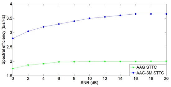 Comparison of spectral efficiency of AAG and AAG-3M STTC.