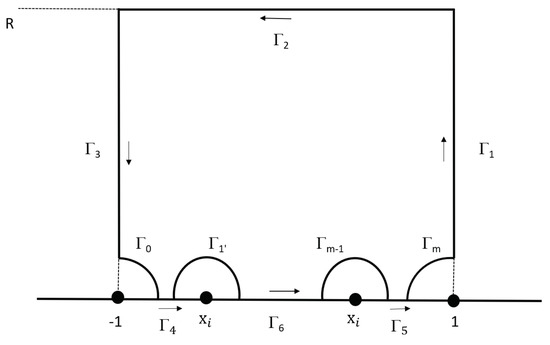 The integrand is analytic in the half-strip of the complex plane: and ; then, based on the Cauchy’s theorem, we obtain