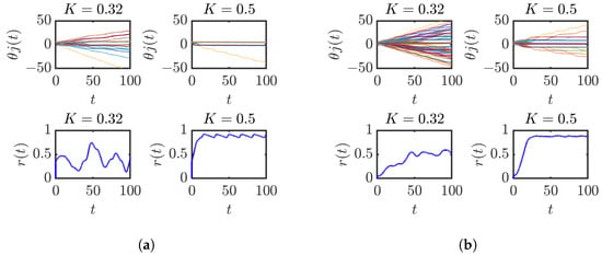 Trigonometric function: can be set in the vicinity of to observe whether the perturbation part can make an impact to elevate the oscillators into the synchronized state.