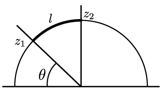 Let . If , is an inversion with respect to the circumference of equation , then . Therefore, for , . Further, by construction, , with , so for . Finally, by the symmetry of function w about line , then for , , and, therefore, for . □