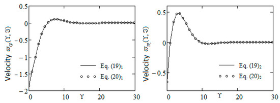 Bearing in mind the results of the previous section, it is clear that the dimensionless velocity fields and corresponding to these motions are given by the following relations (see Equations (23)–(25))