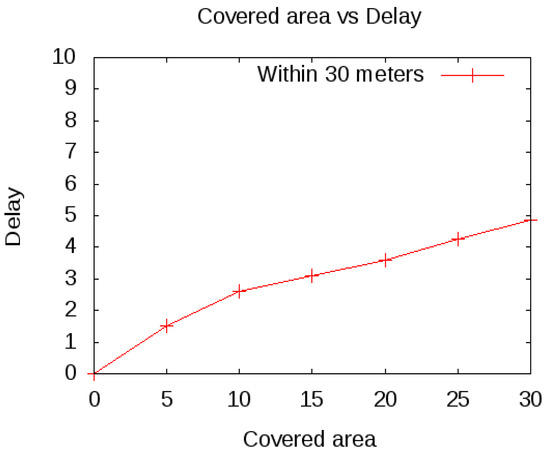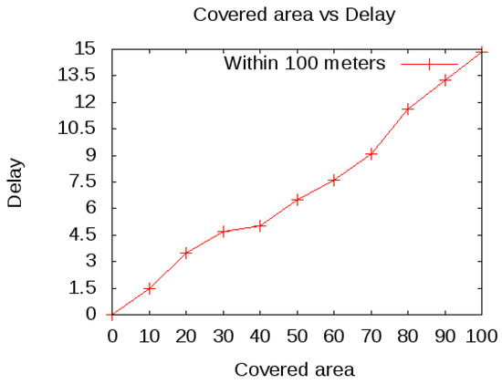 The core failure will start the reconfiguration between the group member for another core and increases the overhead. This reconfiguration and packet drop will also increase the delay. As shown in Figure 5, by increasing the distance up to 100 m and with the increase in negative ACK, this increases the delay. As a result of the spoofing attack, the resources of the group are consumed quickly and the communication cannot be considered reliable.