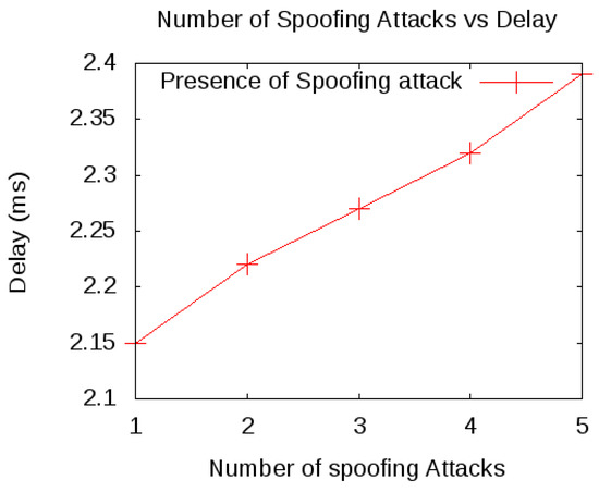 Delay in the presence of spoofing attack.