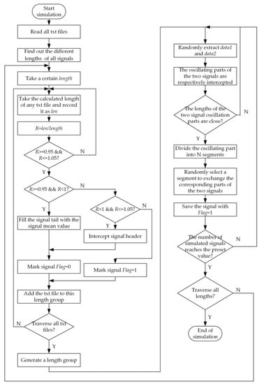 - Repeat steps (3) and (4) for each length group until the number of simulated signals in that length group reaches the preset value.