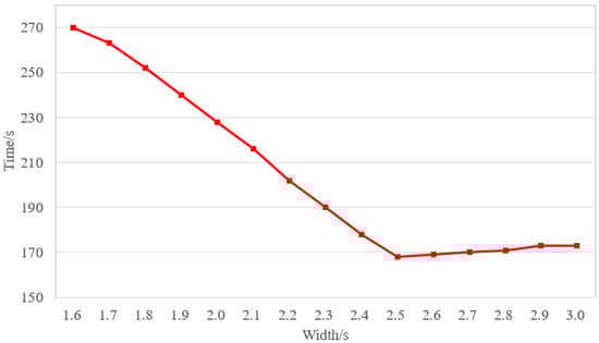 The width of the escalator also has a certain impact on the evacuation time. The relationship between escalator width and evacuation time is shown in Figure 21.