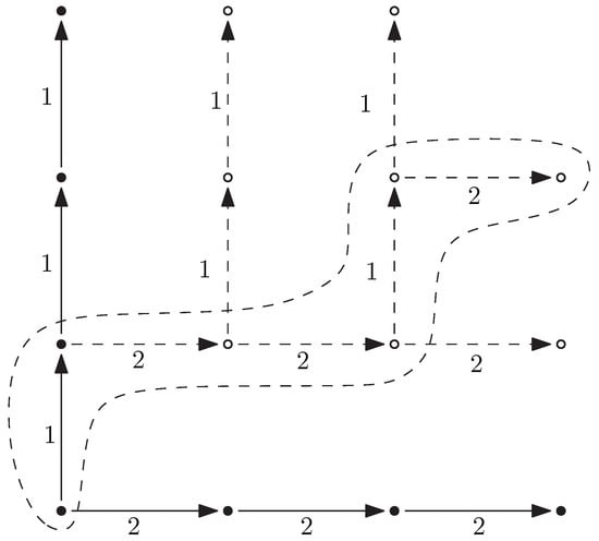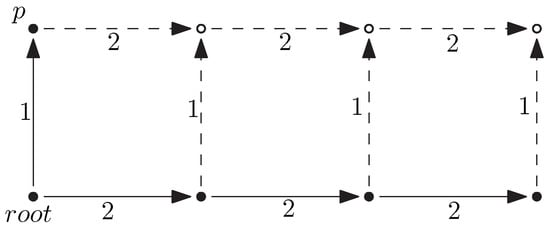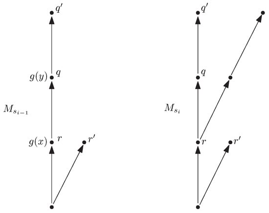 (⊆) Now take a strictly positive implication such that . By Proposition 3 it follows that . Therefore, there exists a rooted homomorphism h from into . Suppose that holds in , is not anonymous, but is anonymous. By the iterative application of Lemma 9 we obtain that and . Therefore, by Lemma 8, there exists a homomorphism from the subtree of generated at x in the direction of y into , sending x to . In a similar way, we define homomorphisms for pairs of points of such that holds in , is not anonymous, but is anonymous. By applying this argument to all such pairs in , we obtain a homomorphism from into . Again (P1) and (P2) are used to ensure that no points above an anonymous u in can be in for any p. Finally, by Lemma 5, we conclude that is derivable in . □