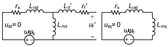 Although the winding structure of the squirrel-cage rotor is a squirrel cage type, the winding can still be converted into equivalent three-phase winding to simplify the analysis. Therefore, the equation of the HTR-ASD in the rotor d-q frame can be expressed as: