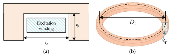 Another parameter to be calculated is the excitation time constant, which is closely related to the resistance and inductance of the excitation winding. Figure 9 shows the excitation window and its size, which is used for the assembly of excitation windings.