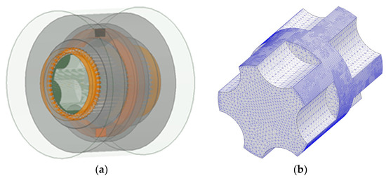 Three-dimensional FEM of the HTR-ASD. (a) The FEM model of the HTR-ASD. (b) Mesh of the rotor finite element model.