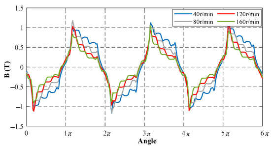Air-gap flux density distribution under different slip speed at 6A excitation current.