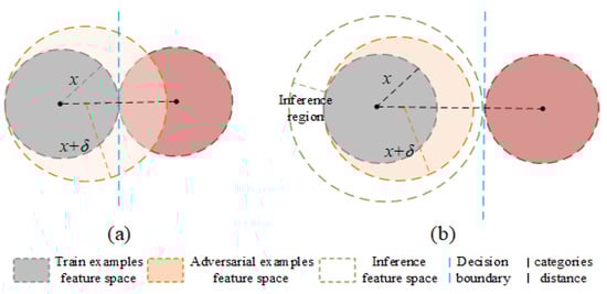 The misaligned distribution between the training and adversarial data is a blind region to the model, which we regard as the inference region. We exploit the inference region, which inspires us to involve margin-like inference information to SCE, resulting in a novel inference-softmax cross entropy (I-SCE) loss. The inference information guarantees the generalization of the neural network to out-of-distribution. Furthermore, I-SCE ensures inter-class separability and that it is difficult for the adversarial example to cross the decision boundary. The softmax cross entropy (SCE) loss is a typical loss function used in training deep models that generally imposes a hard constraint on the label of the input, regressing the probability of 1 on the correct label and the probability of 0 on the incorrect labels, where the hard constraint makes the resultant model over-confident on the predictions, bringing the issue of vulnerability. Several instances of literature have proposed promoting the effectiveness of the softmax loss, such as comparing loss [13], triplet loss [14], center loss [15], large-margin Gaussian mixture (L-GM) loss [16], and max-Mahalanobis center (MMC) loss [17]. These methods are still led by the same principle: minimizing the losses to fit the training examples maximally. These methods make it difficult for adversarial attacks to find the minimum perturbation, making it harder for adversarial examples to cross the decision boundary. These methods ignore the problem of distributional differences. Unlike other methods, our proposed ISCE loss function for distribution differences avoids model overfitting and enlarges the training set distribution. It also has good robustness under adversarial attacks.