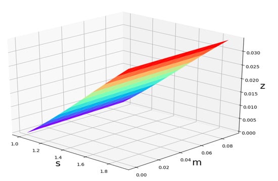 However, the condition is not easy to validate in the case of and . Here, we conducted an experiment to empirically demonstrate its validation. Specifically, we computed the empirical values by averaging the corresponding values of all examples in MNIST and CIFAR10. By employing these two values, we plotted the 3D surface of with respect to s and m, which is shown in Figure 3. The surface indicates that z is always larger than 0 when and . This empirically demonstrates the validity of the conditions in the property.