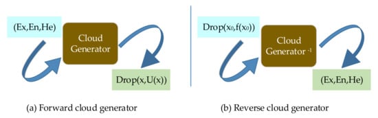 Cloud model is a mathematical model of uncertainty conversion between qualitative concepts and quantitative representations based on traditional fuzzy mathematics and probability statistics proposed by academician Deyi Li [32,33,34], which preserves the randomness and fuzziness of uncertain events in objective reality and realizes the conversion between qualitative concepts to quantitative data.