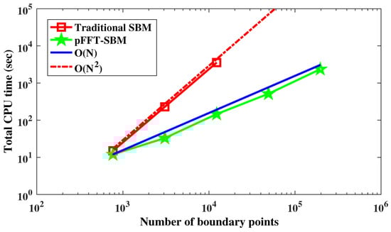 - Li, W.; Chen, W. Precorrected-FFT accelerated singular boundary method for large-scale three-dimensional potential problems. Commun. Comput. Phys. 2017, 22, 460–472. [Google Scholar] [CrossRef]