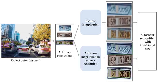 - Lee, S.-J.; Yoo, S.B. Super-resolved recognition of license plate characters. Mathematics 2021, 9, 2494. [Google Scholar] [CrossRef]