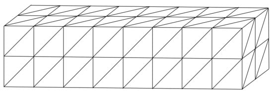 The surface of the rod is uniformly divided into 144 isosceles right triangular linear boundary elements with the right-angle side of 500 mm, resulting in 74 boundary nodes, shown in Figure 7. According to the dimensionless time step parameter β = c1Δt/le [10,11,12,13,14,15], where le represent the length of the elements in the direction of wave propagation, in this example and the following ones, the arrangement β = 0.4~1.0 is adopted to guarantee numerical accuracy.