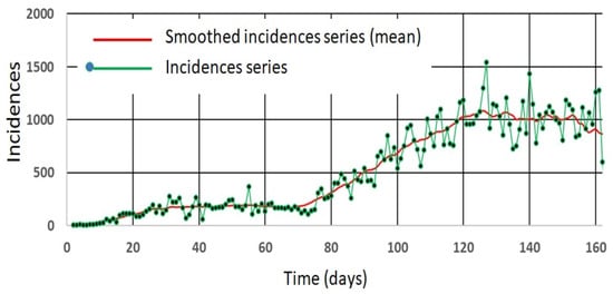Appendix A develops the theory we propose for the estimation of the model parameters (1) from real incidence data series. The estimation of the population mean, , will be , and the estimation of the standard deviation, , will be . Hence, from now on we will assume that and are known values for all incidences.