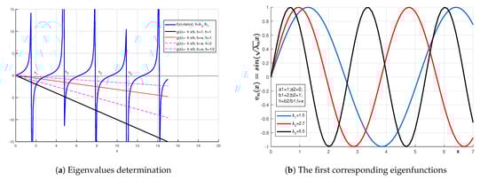 The RSL eigenvalue problem is to find v D ( L ) such that for L v + λ v = 0 with λ , the eigenvalue associated with v is the eigenfunction. For RSL problems, all the eigenvalues are real and positive [3,4,5], and there exists an infinite number of eigenvalues. The sequence of the eigenvalues ( λ n ) n is considered such that λ 0 < λ 1 < < λ n < with lim x λ n = . For each eigenvalue λ n , the corresponding eigenfunction v n is unique up to a constant factor and has exactly n 1 zeros in interval ( a , b ) . The set V = v n n , v n D ( L ) is complete in the D ( L ) space, and the solution of RSL is represented by a generalized Fourier series of the eigenfunction