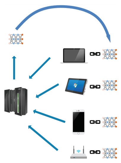 - McMahan, B.; Moore, E.; Ramage, D.; Hampson, S.; Arcas, B.A. Communication-Efficient Learning of Deep Networks from Decentralized Data. In Proceedings of the 20th International Conference on Artificial Intelligence and Statistics (AISTATS), Lauderdale, FL, USA, 20–22 April 2017; pp. 1273–1282. [Google Scholar]