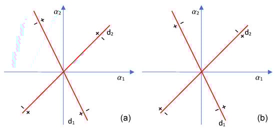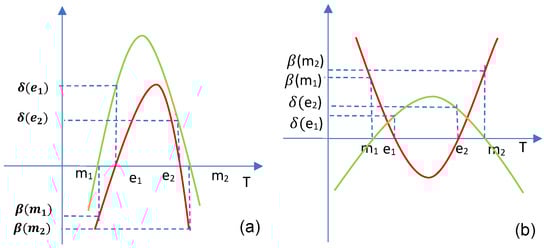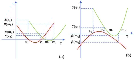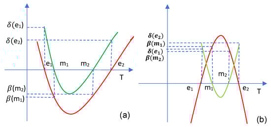 Graphical representation of Case IV ( ): (a) ; (b) .