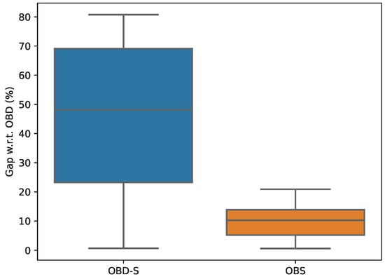 Percentage gaps of OBD-S and OBS with regard to OBD.