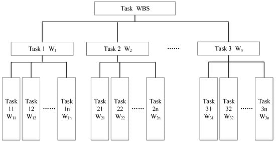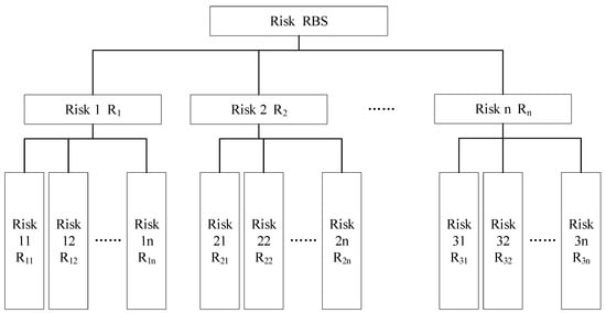 The WBS-RBS structure was first proposed and applied by American PMI experts [23]. WBS refers to the Work Breakdown Structure; that is, a task is divided into sub-tasks according to certain principles, and each sub-task is further divided into independent work packages until it cannot be divided [24]. RBS refers to the Risk Breakdown Structure, which is based on the risk management theory, and through the risk classification of the operation, the operation risk classification and the sub-operation risk classification can be obtained [25]. Through WBS and RBS analysis of the operating system, a WBS-RBS matrix can be formed, and the risk can be identified systematically and comprehensively by judging the risk of matrix elements. The analysis steps of the WBS-RBS method are as follows: build WBS → build RBS → build WBS-RBS matrix with the simplest operation of WBS as the matrix column and the lowest risk of RBS as the matrix row [26]. Among them, the intersection of rows and columns is a possible risk in the operation process. The WBS breakdown structure is shown in Figure 3, and the RBS breakdown structure is shown in Figure 4.