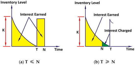 According to the assumption and Figure 1b, the retailer sells units during [0, N] and their account is credited by . This is smaller than the total purchase cost paid for K units so, manufacturer charged at the interest rate for the unsold units in stock during [N, T].