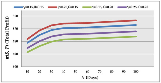 We obtained the computational outcomes for various values of N days using the algorithmic technique mentioned above. The following discussions are made according to Table 2 and Table 3 and Figure 3. Moreover, by examining the sensitivity analysis table (Table 4) and Figure 4, the following consequences were witnessed.