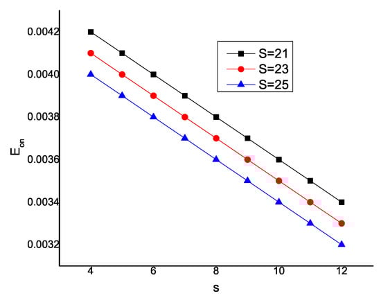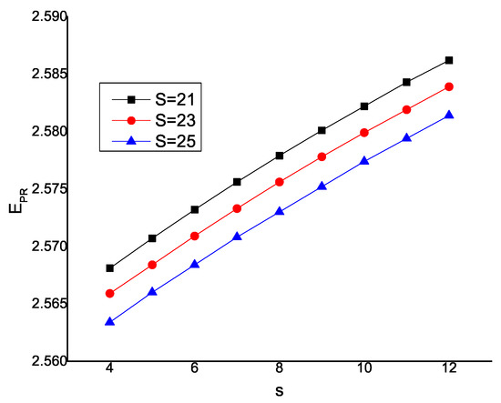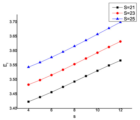 Table 7 provides the expected number of busy servers (see Figure 6) with respect to s and S and the expected emergency replenishment values (see Figure 7). For fixed s and varying (increasing) S, and , respectively, increase/decrease, which is a consequence of the greater availability of inventoried items.