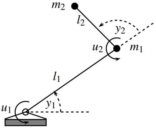 Part 1: Firstly, a robotic manipulator illustrated in Figure 1 is taken into account [47]. This is a 2-DOF planar rigid robotic manipulator with revolute joints whose equations of motions are described by