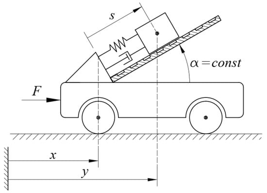 Part 3: Now, the suggested control, along with the constrained control (5) in Berger [47], is applied to a mass-spring system mounted on a car [47] illustrated in Figure 12. This system is described as follows. The mass is moving on a ramp that is inclined by the angle and mounted on a car with mass for which the force F acts as the control input. The equation of motion for the aforementioned system can be expressed as