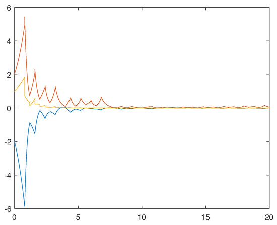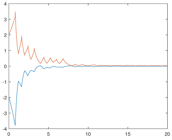Two examples are listed in this section to affirm the validity of the findings obtained in this paper. In example Figure 1, the partial state reset matrix is in the form of . In the second example, the partial state reset matrix is in the form of , where are constants.