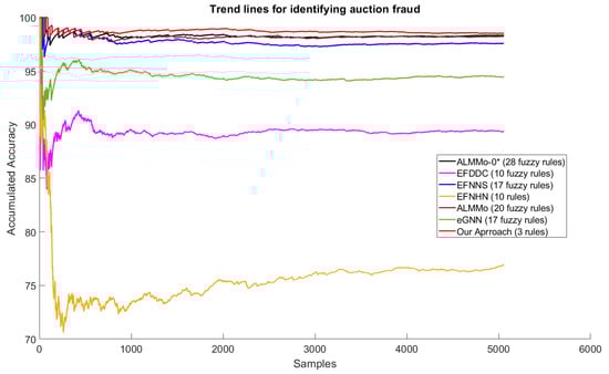 The motivation for applying evolving fuzzy neural networks in dynamic behavior problem areas (such as auction fraud) is connected to the dynamic ability of these types of approaches to identify new behaviors from data, incorporating new neural structures into their architecture. Auction fraud problems have an extremely dynamic behavior, as the types of fraud are constantly changing (either by creating new techniques or when previous frauds are discovered). This evolution of knowledge on the models’ components helps solve complex problems that can dynamically change over time. Stream data assessments require models to obtain assertive and adaptive outputs. Thus, evolving fuzzy neural networks act this way, with the advantage of demonstrating the evolution of knowledge and identifying behaviors of the elements of their fuzzy rules (antecedents and consequents).