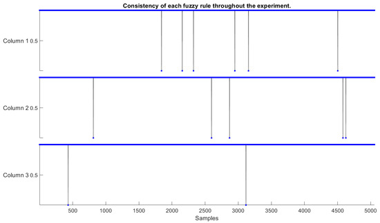 Another factor verified in the experiments is that the inconsistencies of the fuzzy rules during the experiment were minimal and promptly corrected by training eFNN-SODA. Regarding the coverage criterion, as they are Gaussian neurons formed in the fuzzification process, eFNN-SODA also meets the requirement. Finally, the model meets the criterion of completeness throughout the experiment. Therefore, it can be concluded that the model’s fuzzy rules presented at the end of the training meet the criteria of consistency, coverage, and completeness.
